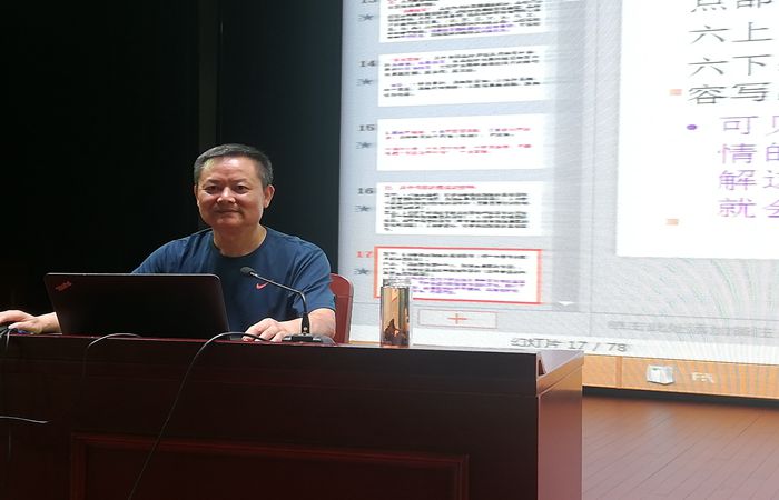 严老师站在立德树人、培养学生核心素养的高度解读新教材,既有理论的引领,又有鲜活的事例,还有实践指导,甚至现场垂范。他的语言朴实而又风趣,接地气,动人心,让与会老师不知不觉沉浸其中,久久回味。当听完他深情朗诵《桥》时,台下更是掌声如雷。打动老师的不仅是严老师的学识,还有他的人格魅力,自信,开朗,激情四射,感觉他比所有人都年轻!