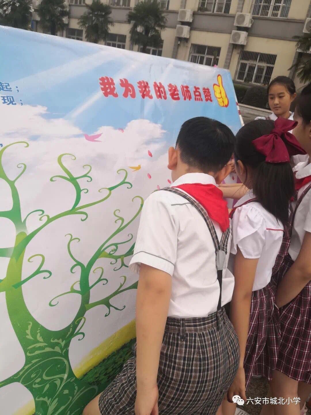 没有老师们的辛勤付出,就没有我们的幸福成长。平日里,只要有一点点进步,老师总是为我们竖起大拇指。今天,让我们为老师点个赞。