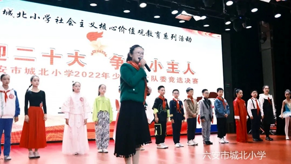 为促进学校少先队工作向着规范和特色的方向发展,选出最优秀的少先队员担任大队委员职务,形成“自已的活动自己搞、自己的阵地自己建、自己的事情自己管”的少先队工作新局面,同时以丰富多彩的形式迎接党的二十大胜利召开,10月11日,在建队日来临之际,億彩网“喜迎二十大 争做小主人”2022年少先队大队委竞选决赛在校演播厅拉开帷幕。