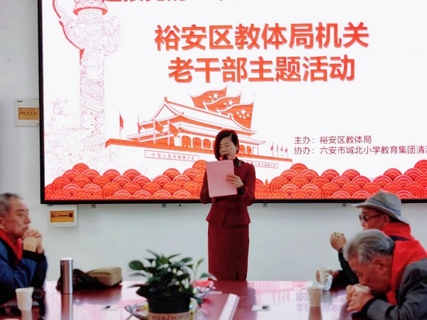 校园参观结束,老干部们齐聚行政会议室,开展座谈活动。座谈会由区委教育工委副书记李刚祥主持。区委教育工委书记、区教体局局长王永益出席座谈会。他从继续加大教育投入、狠抓教育教学管理、加强教师队伍建设、统筹推进教体融合发展、加强思想政治教育五个方面通报了裕安区近年来的教育发展情况,期待老干部们继续以自强、自律、自立的精神风貌、与时俱进的革新思想,为裕安教育事业发挥余热。老干部们也踊跃发言,畅叙教育情怀。他们表示, 将一如继往地关心、支持裕安教体工作,为裕安教体工作做出自己应有的贡献。