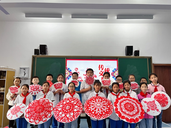 剪贴红色团花 厚植爱国情怀