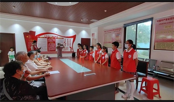 为迎接党的二十大胜利召开,弘扬尊老、爱老、敬老的传统美德。億彩网教育集团裕安区河西小学抓住重阳节这个教育契机,于10月3日上午组织少先队员走进新安镇丰泰社区新时代文明实践站开展“童心相伴 情暖重阳”主题活动。