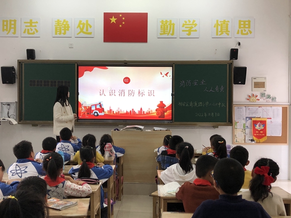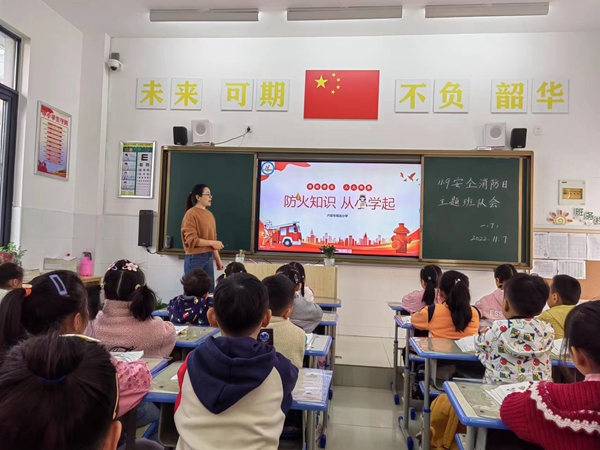 仪式结束后,各班级召开了以“消防安全宣传教育”为主题的班会课。老师向队员们宣传了防火、逃生、报警等消防安全知识,引导分析了各种惨案产生的原因以及给人民生命财产安全造成的危害。通过老师的讲解,队员们不仅加深了对消防知识的理解,还树立了自我保护意识,增强了对消防安全的重视。