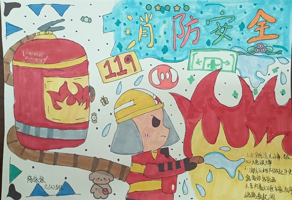 同学们还绘制了精美的“消防安全宣传”主题画,加深对安全防火意识的认识和理解。