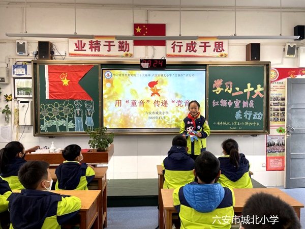 12月1日,在校少先大队的组织下,小小宣讲员们纷纷走进中队,进行了一场关于“二十大报告中的中国古语”的宣讲。