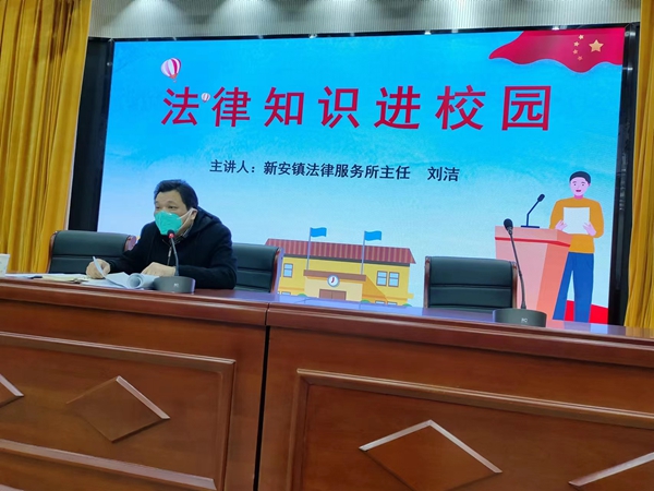 上午10点,新安镇法律服务所主任刘洁应邀走进清溪路小学开展法治讲座。刘主任从“什么是宪法”、“什么是未成年人保护法”、“什么是未成年人犯罪”及“如何预防未成年人犯罪”等几个方面,以浅显易懂的语言,为同学们上了一堂生动的法治宣传课。