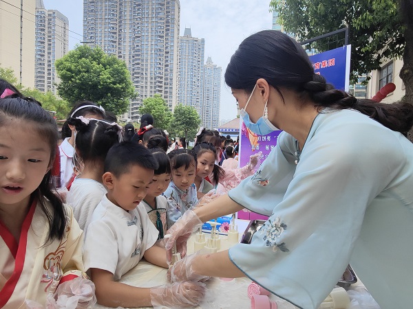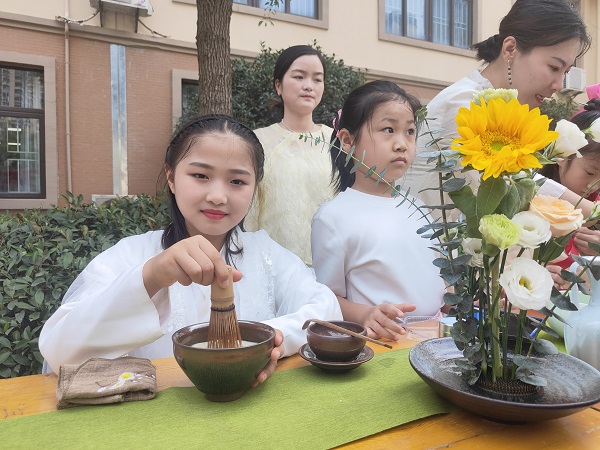 瞧,那边的新颖活动是什么?原来是传统习俗之点茶,看到孩子们聚精会神的样子,求知若渴的眼神,我猜这茶的味道肯定不错!