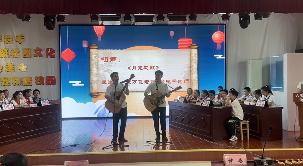 “知中秋,话传统”。下午两点,第五届“传承经典诵中秋”校园知识竞赛如约而至。相声节目《月亮之歌》由吕光平和汪万飞两位老师精彩演绎,亦歌亦舞亦庄亦谐的表演博得了现场所有观众的阵阵掌声。