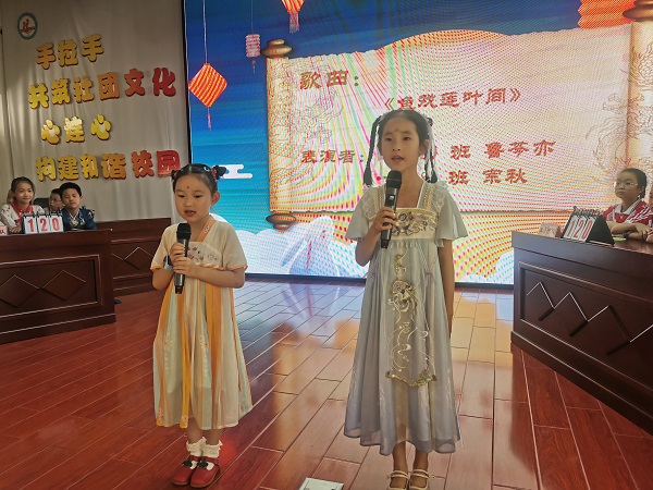 活动开展过程中,来自一(8)班宗秋同学、三(2)班鲁芩亦同学的天籁童声《鱼戏莲叶间》和三年级的诗歌朗诵及六(4)班桑小雅同学优美的独舞《豆蔻梢头》为本次活动锦上添花,河西孩子们多才多艺令人赞不绝口!