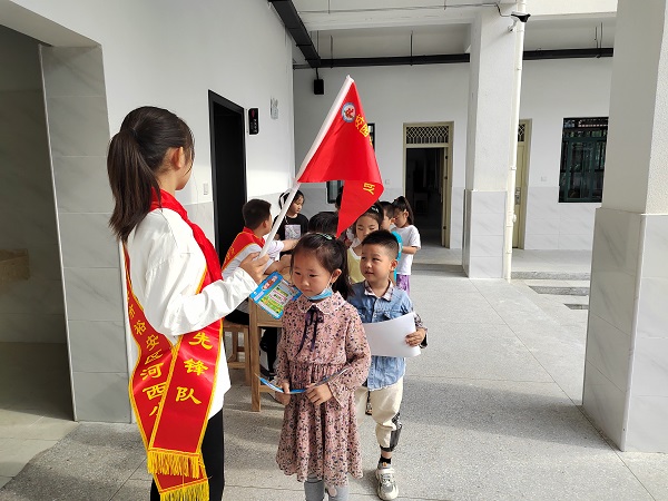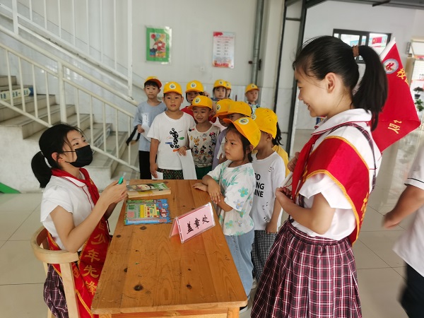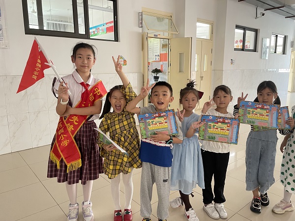 在寻宝的过程中,大队委哥哥姐姐们还当起了小“导游”,给一年级萌娃们一路讲解介绍,萌娃们收获颇丰!