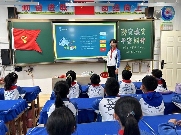 会后,各班级召开“防灾减灾”主题班队会,播放灾害题材纪录片,用实际案例为学生介绍气象灾害、地震、火灾等各类自然灾害,并讲解防范应对措施,旨在引导大家增强防灾减灾意识。