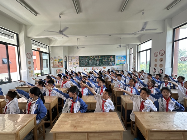 此前,各班学生利用课余和大课间时间反复练习,从配乐到编排都是在同学们自主学习视频后,在班主任和音乐老师的指导下进行集体再创作并注入班级的个性化元素,一班一舞,各具特色。