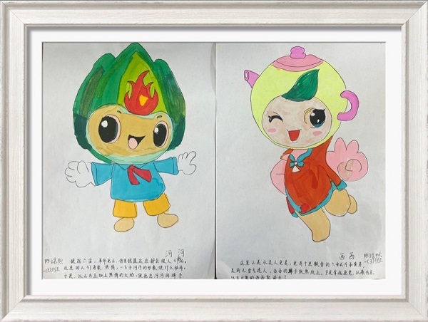 大赛之前,学校开展了面向全体学生的校园吉祥物征集活动。学生们踊跃参与,设计稿纷至沓来。有电脑设计的电子版,也有精心手绘的纸质版。这些吉祥物活泼新颖、形态生动、造型各异……寄托了孩子们对学校的爱。