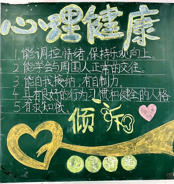 无论何时何地,关心关爱不停。五月初,我校各班班主任还根据学生的心理发展需要,通过图片、视频、宣传片等形式,向学生们普及心理健康相关知识,引导学生们学会调控情绪,做情绪的主人,守护自己的身心健康。各班同学在学习后还出版了一期精美的黑板报。黑板报为同学们带来知识和视觉的享受,让同学们对心理健康有更深层次的理解,在集体的力量中学会关爱自我、关爱他人,做个身心健康的人。