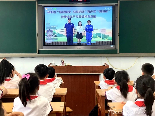 收看防溺水直播活动。6月19日下午,团区委、区教体局、区应急局、区消防大队联合开展“盛夏童安 为爱护航”青少年“防溺水”暨安全生产月应急科普直播活动。活动中,六安市蓝天救援队现场进行情景演示,普及遇落水险情如何自救,同伴如何正确施救,居家消防安全隐患排查和应急处置等丰富的防溺水和消防安全知识、技能。六安市城北积极组织师生、家长收听收看,全方位全覆盖推进防溺水宣传教育。
