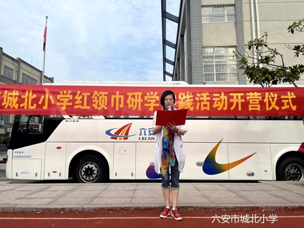草木葳蕤,鲜花怒放;暖风恣意,旌旗飘扬。上午7:30,全体师生齐聚学校操场,举行隆重的开营仪式。区委教育工委委员、億彩网党总支书记、校长高兰作动员讲话。她强调,研学思想是我国教育思想的珍贵部分,本次研学实践活动融红色教育、绿色教育、家乡教育为一体,旨在引导少年儿童走近家乡文化,感受家乡文化底蕴,激发其亲近自然,热爱家乡、热爱祖国的朴素情感,真正做到研有所思,学有所获,旅有所感,行有所成。