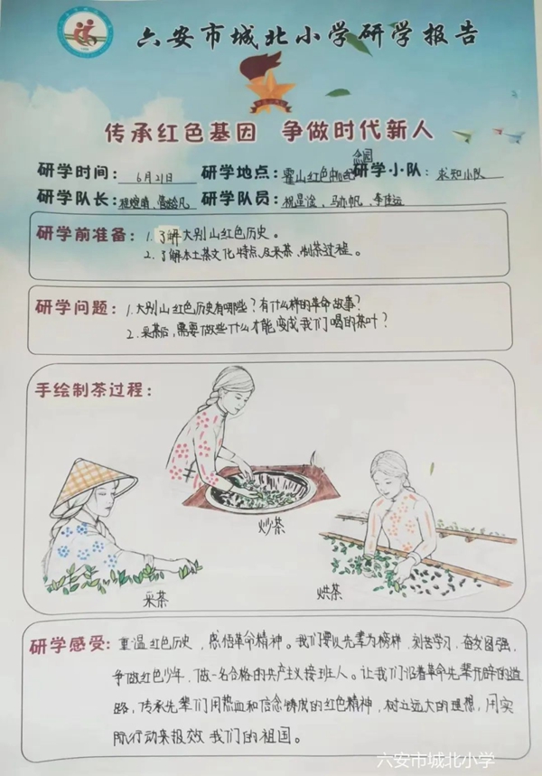 时光如流水,晚霞催人归。一天的研学之旅让队员们走出校门,走进家乡,寻迹历史,探秘自然;在沉浸式的体验中,增长了知识,开拓了眼界,培养和增强了热爱家乡文化的朴素情感,更极大程度丰富了学校劳动研学课程体系。涔涔的汗水,满满的经历,化作笔尖的一个个字符,落进纸里,成就了一段美好的记忆,一次不一样的成长……(巴丹丹)