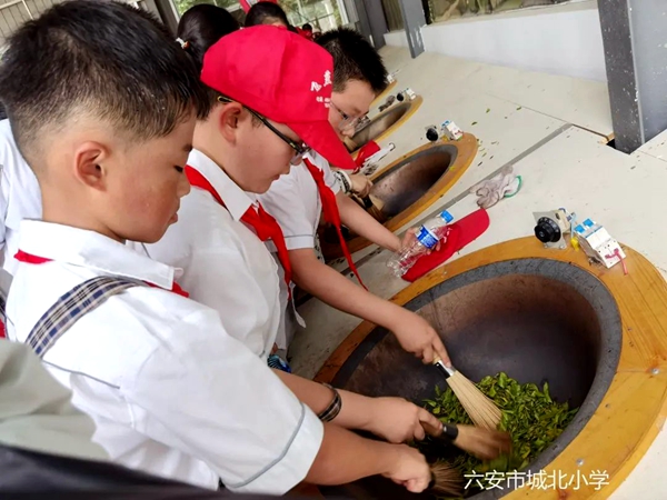 一叶见方寸,一茶现万千。随后,队员们将采摘回来的茶青倒进铁锅,在炒茶师傅和老师们的帮助下学习炒茶――搓、揉、挑、拨、抖、旋,茶叶在手掌间上下翻飞,灵动跳跃,香气渐溢――队员们亲眼见证茶青一点点变成茶叶,从中感受到劳动的快乐和成就。