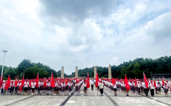 六安是一片红色的热土,是中国革命的重要策源地、人民军队的重要发源地。研学之旅第二站来到安徽省革命传统教育和爱国主义教育基地――霍山红源广场。在大别山革命英雄群雕前,全体师生进行庄严的缅怀仪式。少先队员代表敬献花篮,并在队旗下坚定宣誓、激情朗诵。校长高兰作了讲话,勉励队员们不忘历史、牢记使命,好好学习,用聪明才智去实现先烈们未竟的事业,去创造祖国无限美好的明天!