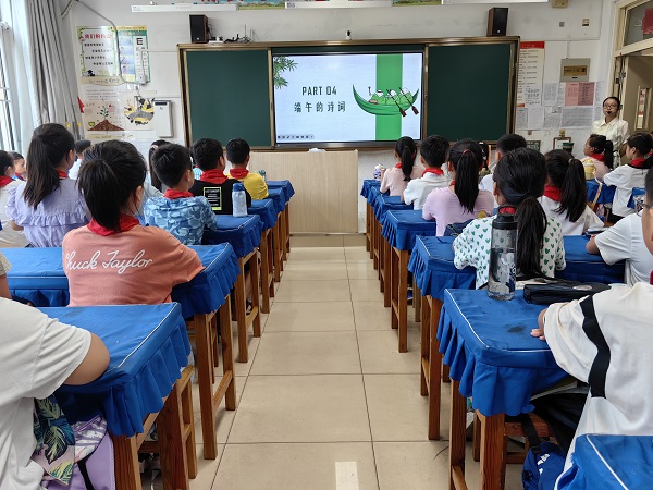 低年级以课本为基础,诵读书本上的《端午节》课文;中高年级寻找与端午节有关的诗句,在课堂中与同学们进行分享。“我欲从灵均,三湘隔辽海。”,琅琅书声,传诵千年文化;盈盈微笑,塑造美好心灵。文字里流淌着中华文化的血脉,声音里传递着美好未来的呼唤。孩子们气宇轩昂的模样,慷慨大方的诵读,让师生们再次感受到中华经典的魅力。