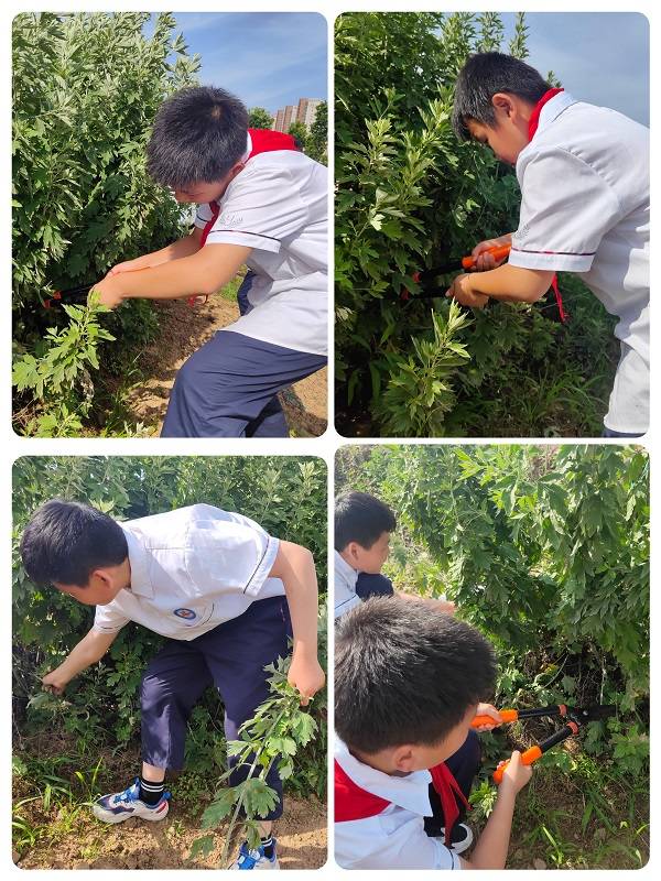 为了让学生们度过一次有意义的端午节,在早春时节便组织学生在校园中栽种艾草,挥锄、浇水、拔草,学生们亲手种植、精心呵护,亲眼目睹艾草生长的每一个过程。在同学们期盼的目光中,艾草一天天长大,终于到了收获的季节,孩子们又忙着砍艾草,晒艾草,搓艾绒,忙得不亦乐乎。