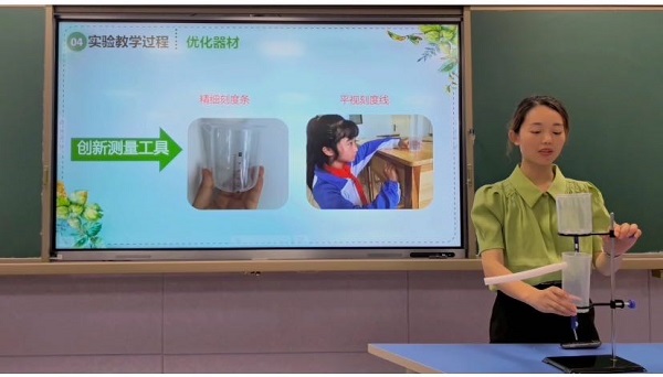 李婷婷老师的说课题目为《滴水实验》,她以教学过程中的实际问题为导向,引导学生自主学习、合作探究解决问题,突出学生主体地位。
