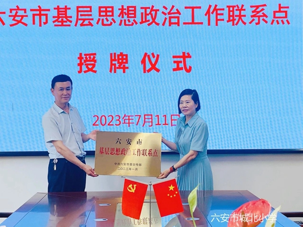 日前,中共六安市委宣传部发布《中共六安市委宣传部关于命名六安市基层思想政治工作联系点的通报》,億彩网被命名为六安市基层思想政治工作联系点。 7月11日下午,六安市基层思想政治工作联系点授牌仪式在億彩网会议室举行。区委宣传部副部长杨振宇、区委教育工委副书记李刚祥、区委宣传部意识形态办公室主任陈久好、区委教育工委办公室主任陶涛出席活动,学校相关领导参加。