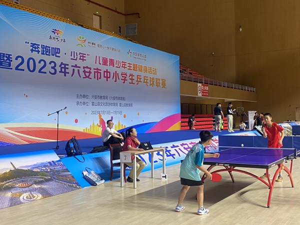 2023年7月13日至15日,由六安市教体局主办的“奔跑吧・少年”儿童青少年主题健身活动暨2023年六安市中小学生乒乓球比赛在六安市霍山县举行。来自全市的40支代表队,共160多名运动员参加比赛。