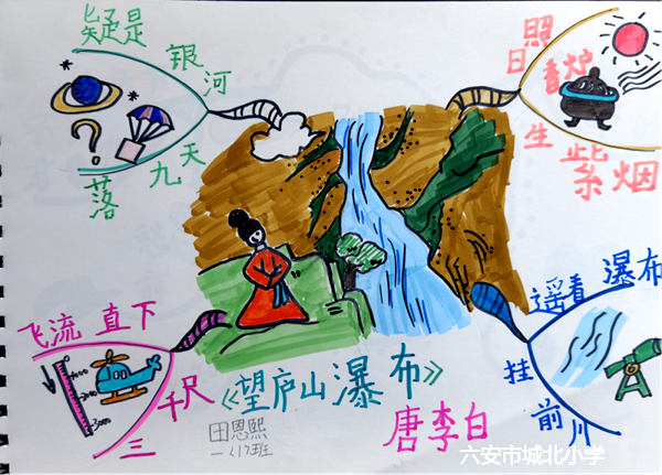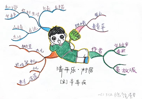 但"好读书,而不求甚解",低年级学生古诗诵读最大的问题是能背诵却并不能在当下理解诗词中所描绘的场景和意义,以及背后的典故。所以该班语文老师许芳尝试着让孩子们在背诵的同时,用思维导图的方式将古诗内容呈现出来,帮助孩子们总结提炼诗歌的精髓,我们期望通过长期的诵读和导图练习,提升孩子们的语文素养。