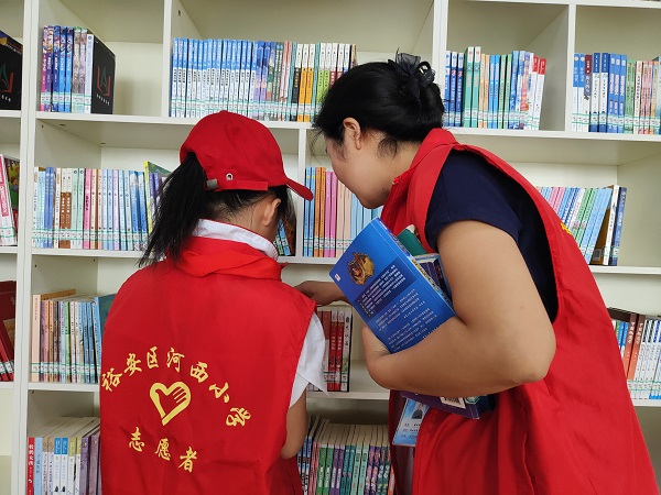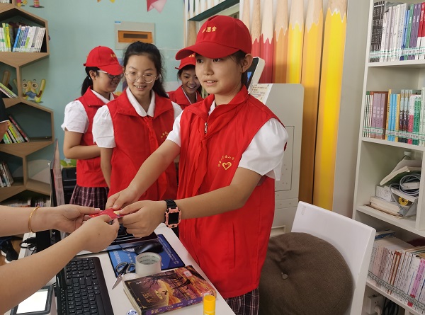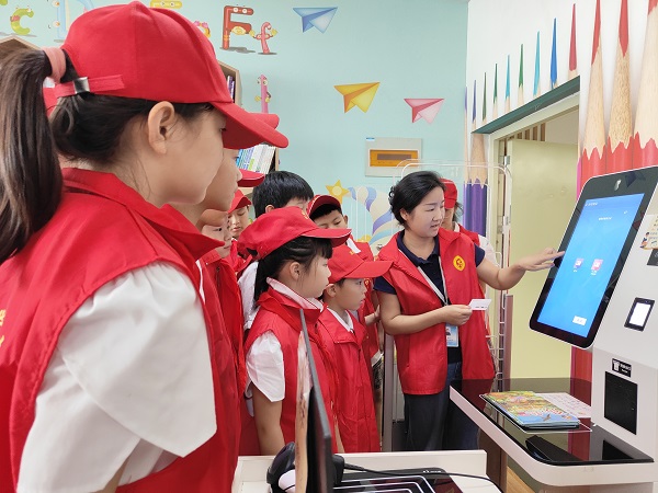 首先,图书馆工作人员对少先队员们进行了“岗前培训”,为参与实践服务的少先队员们进行了分工。接下来,大家就投入到了志愿服务中,有的倡导文明阅读,维护图书馆的良好阅读环境;有的负责图书借阅、归还工作;有的使用自助设备提供简单咨询服务;还有的进行破损图书的简单修补等。
