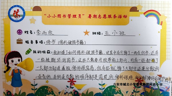 为进一步丰富少先队员的暑期生活,让孩子们度过一个充实、快乐而有意义的假期。8月23日,河西小学组织少先队员们走进裕安区图书馆开展“小小图书管理员”暑期志愿服务活动。