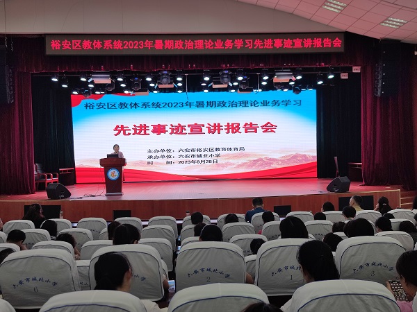 躬耕杏坛育桃李,春风化雨铸师魂。为进一步深化师德师风师能建设,激发教师爱岗敬业、无私奉献、崇德向善、为人师表的教育情怀,8月28日上午,裕安区教体系统2023年暑期政治业务学习先进事迹宣讲报告会在我校隆重举行。億彩网、億彩网教育集团河西小学、清溪路小学、金马小学以及六安市城南小学全体教师聆听宣讲。
