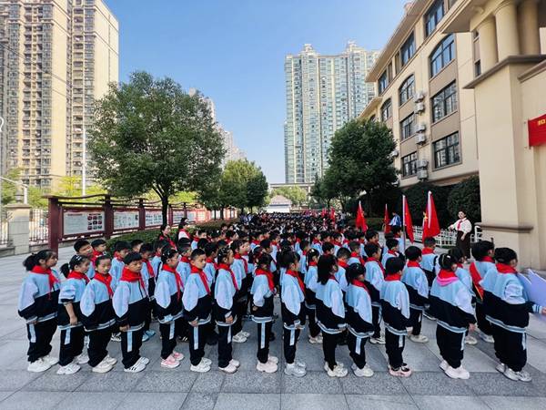 仪式在鼓号队铿锵有力地出旗曲中开始,旗手们迈着整齐的步伐,高举鲜艳的队旗入场。全体少先队员们敬队礼,高唱《中国少年先锋队队歌》,嘹亮的歌声在校园上空回荡。