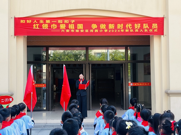 为深入学习贯彻党的二十大和二十届三中全会精神,全面落实全员育人的德育理念,激发少先队员的组织感、光荣感和使命感,河西小学、金马小学举行以“红领巾爱祖国 争做新时代好队员”为主题的新队员入队仪式。