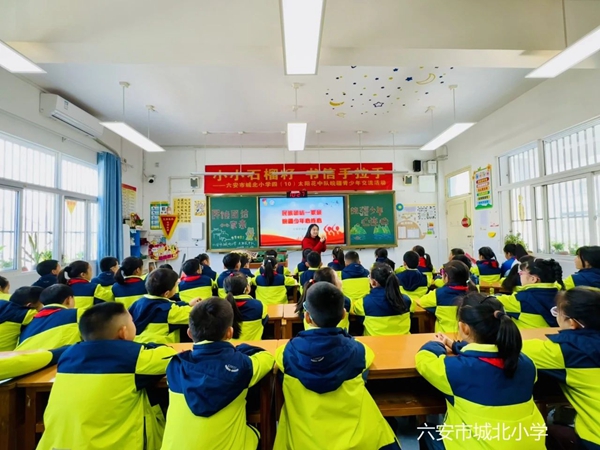 大队委员王茜为队员们带来了《两重巾 援藏情》主题演讲,为大家深情讲述了安徽省“组团式”援藏医疗队的故事,队员们真切感受到民族团结的力量和祖国大家庭的温暖。
