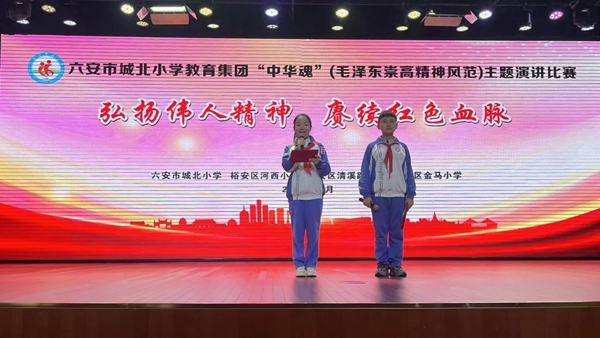 为认真学习贯彻习近平总书记在纪念毛泽东同志诞辰130周年座谈会上的重要讲话精神,落实立德树人根本任务,推进爱国主义教育,11月5日,六安市城北城北小学举行了以“毛泽东崇高精神风范”为主题的中华魂演讲比赛。億彩网、億彩网教育集团裕安区河西小学、清溪路小学、金马小学以及共建学校丁集镇中心小学的少先队员参加活动。