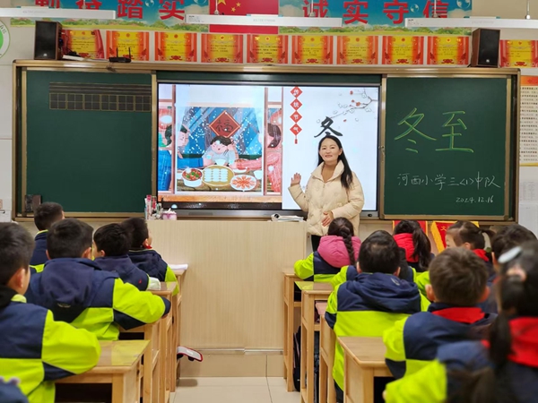主题班队会上,辅导员们为队员们详细讲解了二十四节气的来历和作用,并带领队员们深入了解冬至的各种风俗。作为新时代的少先队员,肩负着传承和弘扬优秀传统文化的神圣使命,应当认真学习传统文化知识,用心领悟其中蕴含的民族精神,在这优秀传统文化的滋养下,怡情养志,涵养品德,努力培育和践行社会主义核心价值观。