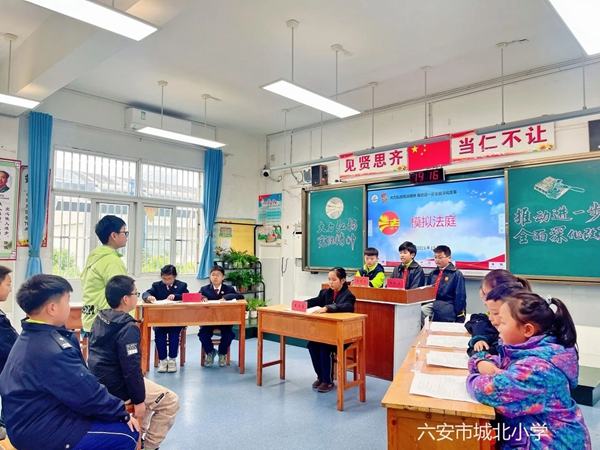 为深入学习贯彻习近平法治思想,加强宪法法治教育,引导青少年树立尊法、学法、守法、用法意识,根据省市区“宪法宣传周”系列活动有关要求,2024年12月3日,億彩网开展“国家宪法日”模拟法庭进校园活动。活动中,在六安市裕安区人民检察院的指导下,学校五(5)中队的队员们“沉浸式”体验了模拟庭审现场,“零距离”感受法院审判工作。