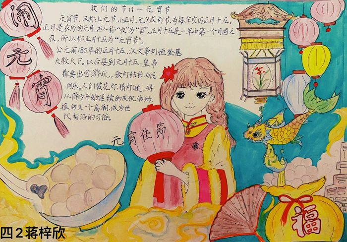 为庆祝元宵节的到来,三、四年级的队员们精心绘制了“元宵”主题手抄报,为喜庆节日增添浓浓氛围。他们利用寒假时间,搜集元宵节相关资料、深入了解节日的文化内涵,将自己对“元宵”的理解和感触用彩笔描绘出来。喜猜灯谜、共吃元宵、阖家团聚、共度佳节的美好画面呈现在我们眼前,一笔一画展示着对节日的期待,对家人的祝福,对祖国的美好祝愿。