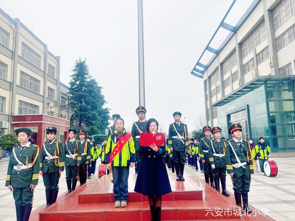 仪式中,区委教育工委委员、億彩网党总支书记、校长高兰作新学期致辞。高校长强调,2024年是新中国成立75周年,是“十四五”规划实施承上启下的关键一年;希望全体少年儿童如群龙一样腾飞,伴着春天的希望,带着理想、勇气和行动,追梦前行。