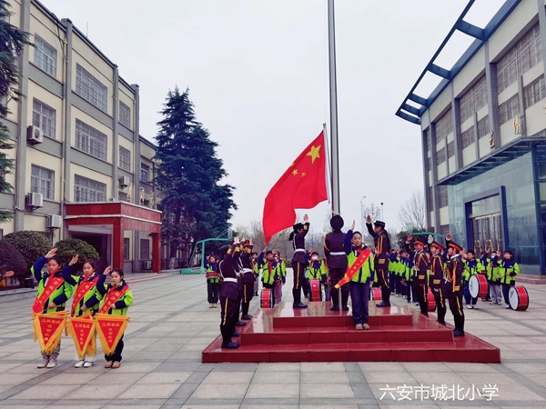 上午8时,升旗仪式正式开始。随着激昂的《义勇军进行曲》,鲜艳的五星红旗冉冉升起,迎风飘扬。全体师生肃穆而立、高唱国歌,向国旗敬礼,向祖国表达深切的祝福。