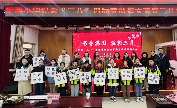 杨柳轻吐眉芽绿,桃花含羞醉春风。在阳春三月、鸟语花香的最美时节,我们迎来了第114个“三八”国际劳动妇女节。为弘扬中华传统文化,增强师生书法艺术审美能力,丰富女教师课余生活,河西小学邀请六安市女书法家协会举办了一场别开生面的纪念“三八”国际劳动妇女节暨书法进校园活动。