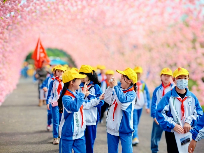 9时许,师生到达位于独山镇双峰村的旅游景点――樱花溪畔,花红、草绿、天蓝、溪清……走进大自然,孩子们放飞快乐的心情。在这里,他们亲手做出六安当地美食――蒿子粑粑,亲手培出西红柿盆栽,劳动让他们得到了乐趣、增长了见识、增强了能力,愉快的研学之旅成了行走的课堂,孩子们获益良多。劳动过后,他们来到无动力游乐园,或滑、或爬、或钻、或跑,汗珠在阳光下晶莹透亮,笑声在空气中弥漫飘扬,樱花溪畔成了一片欢乐的海洋。