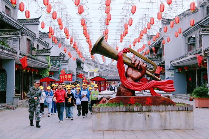 缅怀仪式结束后,同学们排着整齐的队伍,穿过独山红军街,历览了独山革命旧址群,参观了六霍起义纪念馆,在导游的带领和解说中,队员们近距离感受历史,从而坚定理想信念,厚植爱国情怀。