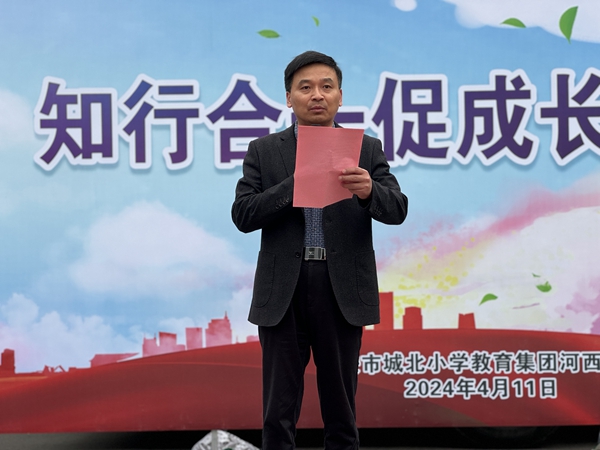 4月11日早上7点40分,500余名师生齐聚操场,举行开营仪式。河西小学执行校长张仁朋发表动员讲话,他对全体队员提出了殷切期望,希望队员们珍惜这次研学机会,在这“行走的课堂中”团结协作,知行合一,追求卓越,在活动中锻炼自己、塑造自己、展示自己。在庄严升旗仪式后,队员们走出校园,踏上了红色教育、劳动研学之旅。