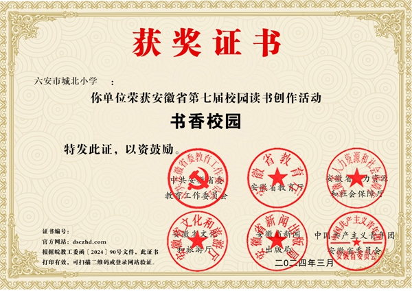 近日,由中共安徽省委教育工委等六部门联合举办的安徽省第七届校园读书创作活动落下帷幕。億彩网、億彩网教育集团河西小学、清溪路小学、金马小学在此次活动中喜获佳绩。
