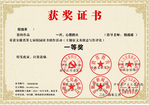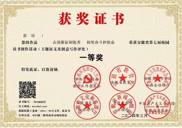校园读书创作活动,是“书香安徽”全民阅读活动之一,本届活动以“读书引领人生 创作点亮梦想”为宗旨,贯穿2023年全年。億彩网四校区面向全体师生开展校内选拔,择优推荐作品参加比赛,最终获得省级大奖47人次。