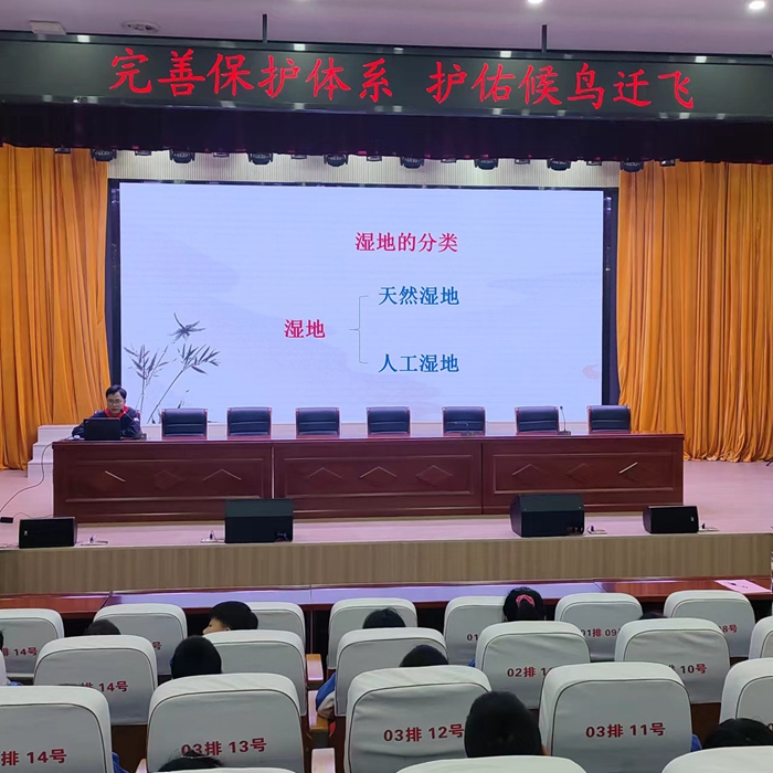 随后六安市淠河国家湿地公园管理处湿地管理科工程师吴靖给三年级师生带来了一堂别开生面的科普专题讲座。