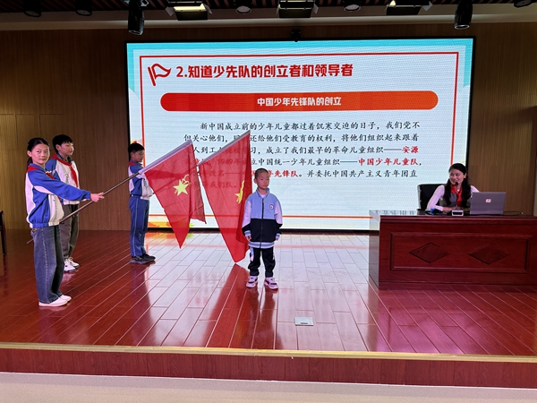 我是中国少年先锋队队员,我在队旗下宣誓,这是每一位新队员对未来的承诺,对理想的追求,对责任的承担。辅导员老师带着预备队员们一起宣誓,每一句誓言都掷地有声,每一个眼神都充满决心。
