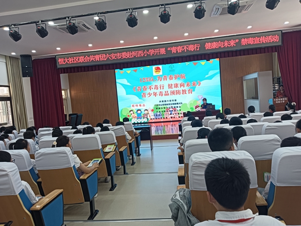 为深入学习贯彻习近平总书记关于禁毒工作重要指示精神,充分发挥学校教育的辐射作用,进一步增强青少年识毒、拒毒、防毒和禁毒意识,提高青少年辨别和抵御毒品不良诱惑的能力,5月14日下午,河西小学联合恒大社区、裕安区社区戒毒(康复)服务中心开展“青春不‘毒’行 健康向未来”主题禁毒法制知识教育宣传活动。1